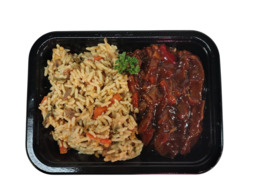 Nasi met biefstukreepjes in ketjapsaus
